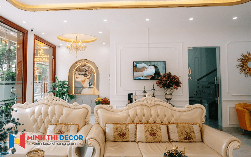 Với sự hỗ trợ đắc lực, đồng hành xuyên suốt từ đội ngũ thiết kế chuyên nghiệp tại Minh Thi Decor, chủ đầu tư sẽ được cung cấp những phương án thiết kế, trang trí nội thất mang đậm phong cách riêng nhưng vẫn đáp ứng nhu cầu sử dụng. Chúng tôi luôn mang đến cho khách hàng của mình một không gian nội thất đảm bảo về hình thức, giá trị sử dụng với chi phí cực kì cạnh tranh. Mời bạn tham khảo qua dự án thiết kế nội thất thẩm mỹ viện Hoàng Gia – một trong những dự án chúng tôi rất tâm đắc.