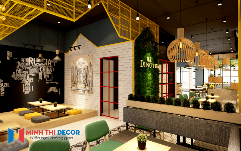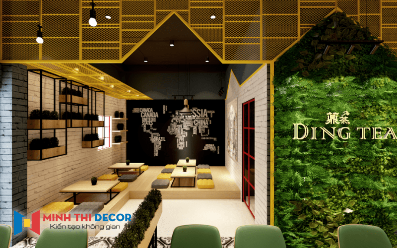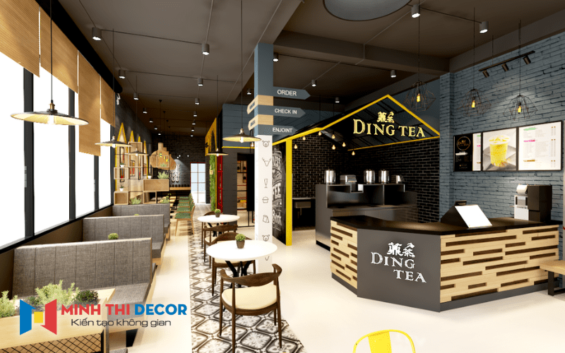 Trà sữa chưa bao giờ là loại thức uống hết “hot” trong ngành dịch vụ ăn uống hay F&B nói chung. Với sự cạnh tranh ngày càng khốc liệt từ vô số thương hiệu trà sữa khác nhau, các chủ đầu tư bắt đầu tìm đến việc thay đổi, nâng cấp không gian thiết kế quán trà sữa của mình. Trong tháng 4 vừa qua, Minh Thi Decor đã được làm việc với chị Huyền, người đang điều hành và là chủ đầu tư của chi nhánh trà sữa Ding Tea tại Đồng Nai. Nhằm đáp ứng những mong muốn về cải tạo không gian quán của chị, chúng tôi đã mang đến bản thiết kế với phong cách hiện đại đầy tự mới mẻ ngay dưới đây. Hãy cùng tham khảo qua nhé!