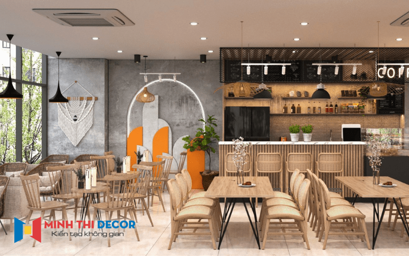 Phong cách thiết kế nội thất luôn là yếu tố quan trọng để tạo nên 1 quán cafe đẹp, ấn tượng và thu hút khách hàng. Dự án thiết kế, thi công nội thất cho quán cafe Chilli do đội ngũ tại Minh Thi Decor đảm nhận thực hiện được dựa trên mong muốn, sở thích cá nhân từ chủ đầu tư cũng như chọn lọc các xu hướng thiết kế phổ biến hiện nay. Hãy cùng tham khảo chi tiết hơn về mẫu thiết kế quán cafe Chilli tại Bình Dương ngay sau đây bạn nhé!