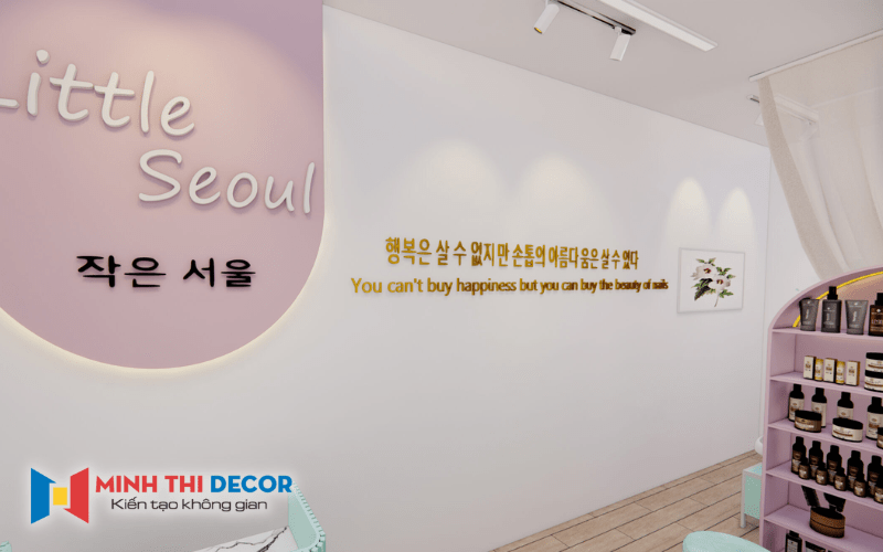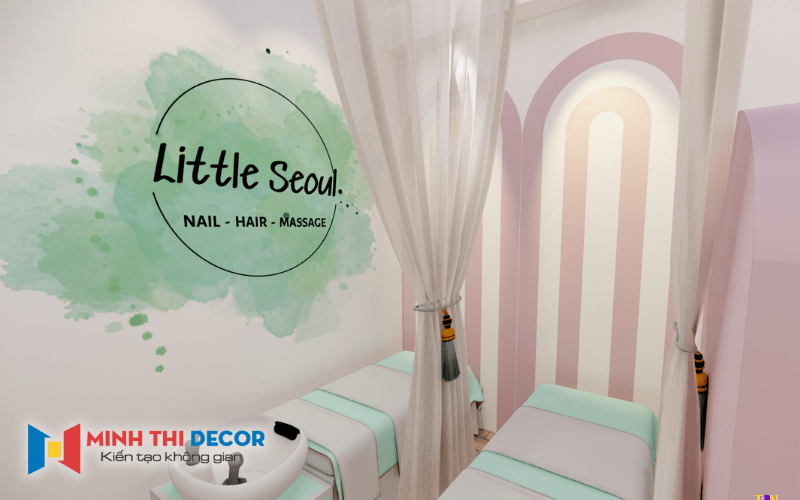 Không gian của mô hình này khá khiêm tốn, chỉ vỏn vẹn không tới 30m², tiệm nail Little Seoul được thiết kế và bày trí theo phương thức khá cơ bản với hình mẫu của một tiệm nail truyền thống. Nhưng cũng không thể bỏ qua những điểm nổi bật được thể hiện qua các chi tiết trang trí hết sức dễ thương.