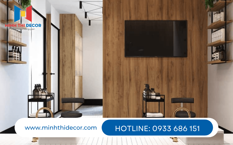 Hầu hết đồ nội thất của tiệm nail đều sẽ được sử dụng từ gỗ tự nhiên hoặc gỗ công nghiệp khi thiết kế. Việc sử dụng chất liệu gỗ để trang trí góp phần không nhỏ trong sự thành công của hạng mục thiết kế tiệm nail. Đi kèm theo đó là một số đồ cổ trang trí như đồng hồ cổ, những bộ bàn ghế ngấm màu của thời gian.